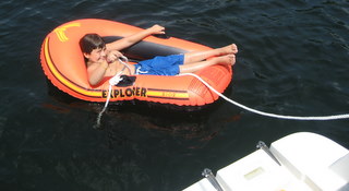 so choosing proper shoes are important. Remember, this is not a cruise ship, you will hold rails and make some small jumps. We do not wear regular shoes on the boat as it gets wet and dirty (keeping the boat clean is usually a full time job), so please take off your shoes as you are getting aboard. We suggest bringing non-marking boat shoes, sandals, sneakers or you can stay barefoot. We have plenty type II life jackets for adults (8 on the bridge and 4 under the stateroom bed), 4 for youth size (in the closet on the left as you enter the cabin), and 1 for little kid (under the seat storage in the bridge) that will fit under the age of 5 but if you have something more comfortable (usually type III) bring that as it is required to be worn all the time for kids under 5 when they are outside of the cabin. Sports Authority has good selection at reasonable prices for kids under the age of 5. If you do not know how to swim, you might want to wear a life jacket. We will swim and sunbath so do not forget the swimming gear, lake water is usually 70 to 80 degrees in July & August. The bathrooms are available at the club (ask me the code for doors), and try to utilize those and not the one of the boat specially when we are docked (as there is limited tank capacity which needs to be pumped out). When we are leaving the dock and coming back in, please keep all your hands inside the boat. Do not try to help by pushing against the poles. It is extreamly dangerous and the boat is made to handle such pressures. It makes it harder for the captain when everybody is trying to help. While we are at cruising speed, all kids should be sitting and not moving around as we do not want anybody running over board. While on the lake, we encourage not to smoke as this is a gas vessel as we do not want to blow up. If you have to, please smoke at the forward section of the boat and use an empty bottle or can to keep your butts. It is illegal to litter on the water, so all trash has to be kept inside the boat, please use the trash bags we have. Once we are on the lake, there are no stores around, so bring whatever you feel necessary but we will have fridge full of drinks and food. If you bring food, please choose non messy ones and try not to eat in the cabin as it is easier to clean outside. No pets are allowed to run on the club grounds. |